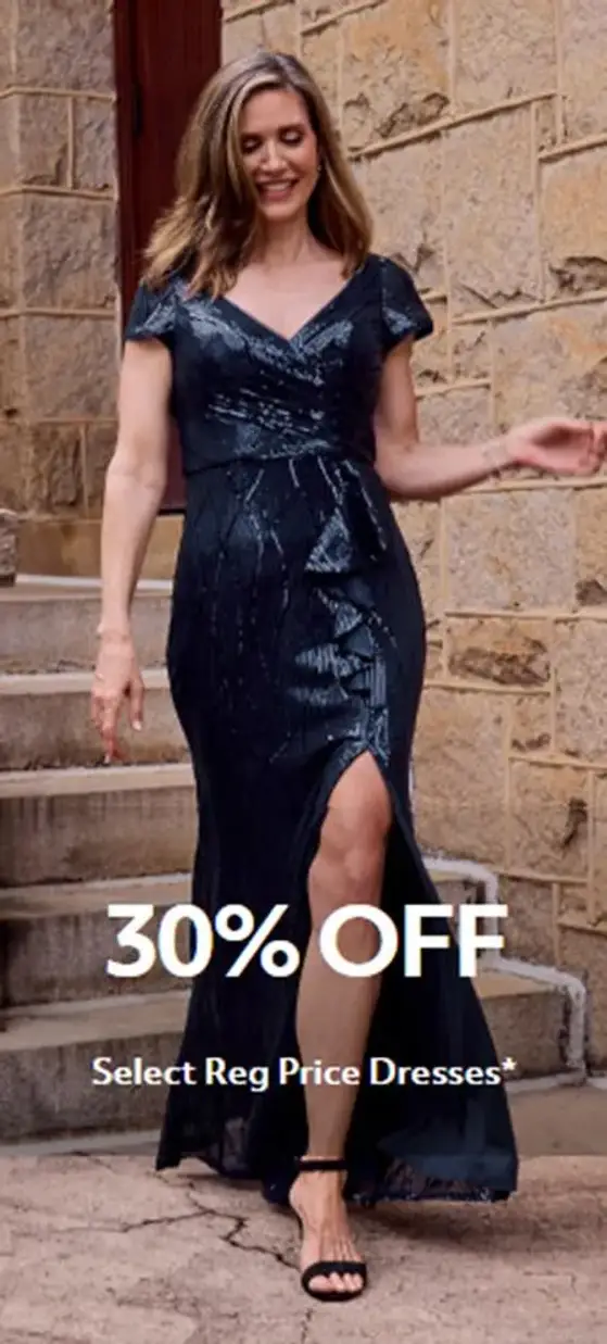 Hurry in and get 30% off on select regular price dresses in store for a limited time.